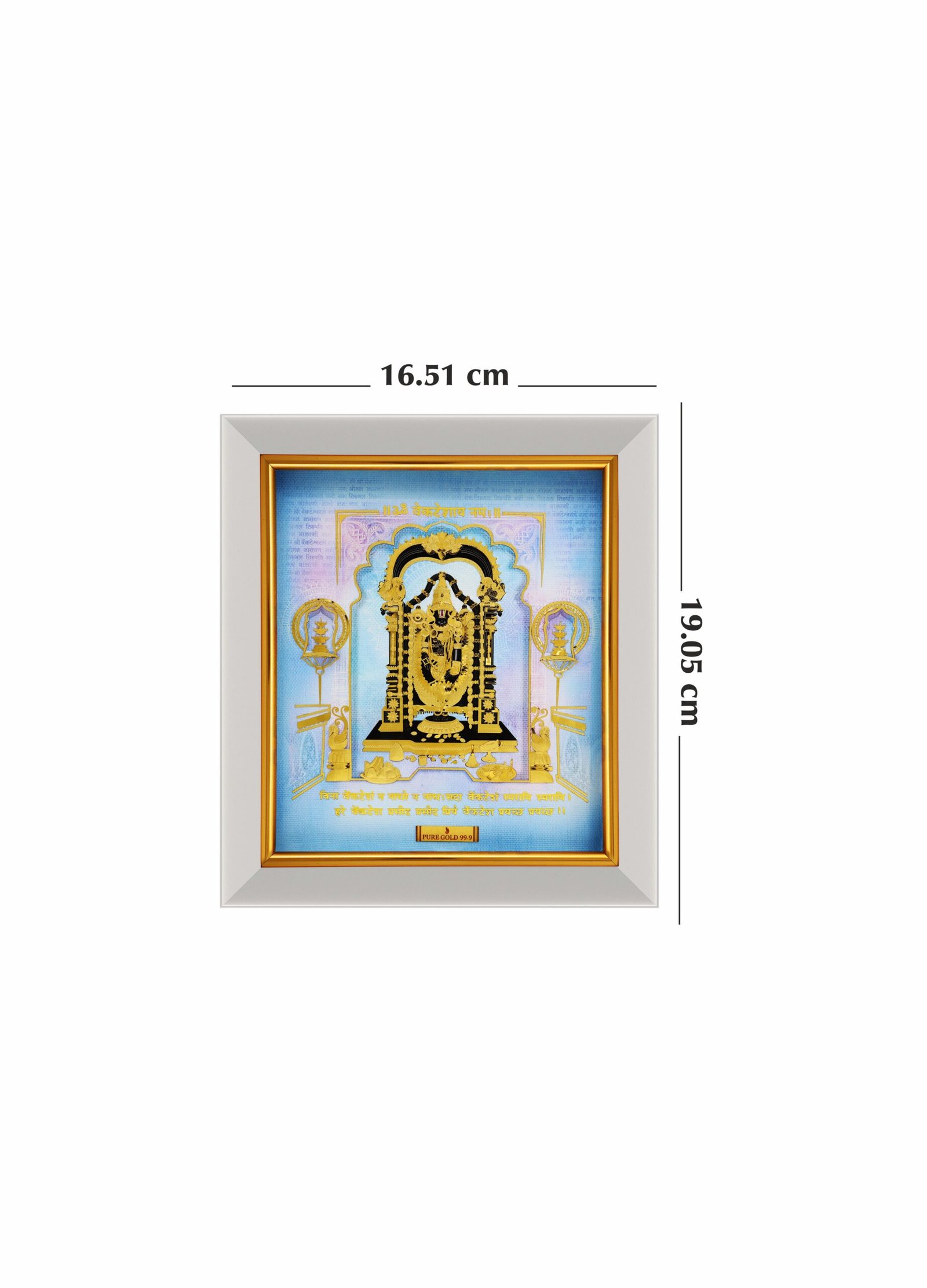 The **Prima Art Balaji 24K Pure Gold Artwork (s4)** is a mesmerizing depiction of Lord Venkateswara, widely revered as Balaji. This remarkable artwork captures the divine essence of the deity in every fine detail, portraying Lord Balaji as the embodiment of prosperity, grace, and compassion. Crafted from a 24K pure gold sheet, the piece radiates the majestic presence of Lord Balaji, depicted in a blessed, upright posture, extending his divine blessings to his devoted followers.
