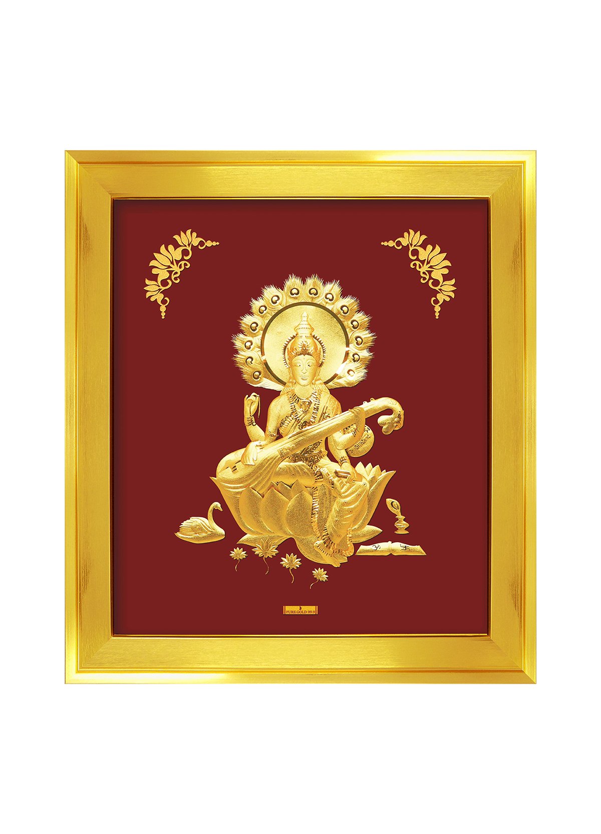 The artwork is elegantly framed in luxurious gold, accentuating its superior quality and craftsmanship. With a “Pure Gold 99.9%” label, it guarantees the purity of the gold used, adding sophistication and grace to the piece. This premium artwork not only enhances the visual appeal but also underscores its spiritual significance, making it a perfect gift for those seeking blessings in their lives.