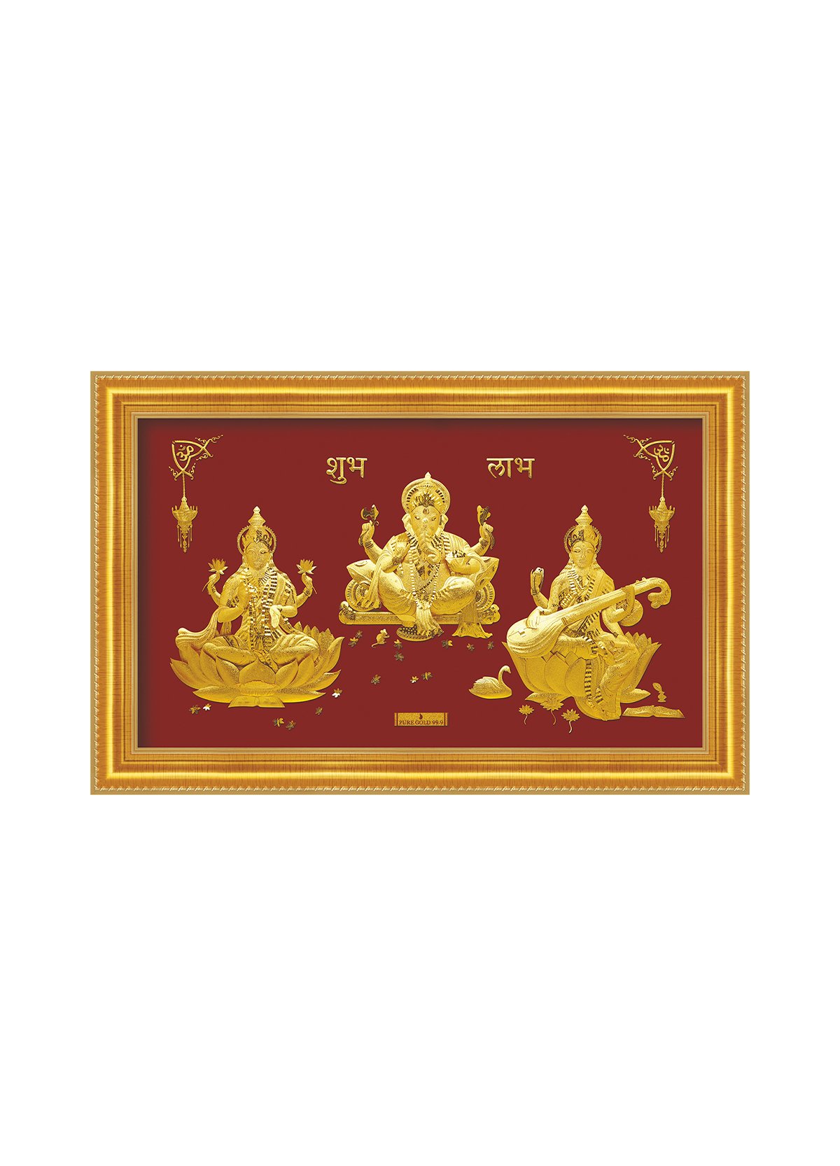 Shri Lakshmi Ganesha Saraswati 2A6 24K Pure Gold Sheet Based Artwork
